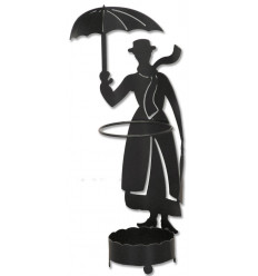 Paragüero original fabricado en forja con un diseño artístico muy divertido que destaca por la silueta de Mary Poppins recortada a láser. Materiales Forja trabajada y recortada a láser. MedidasDiámetro: 22 cm.