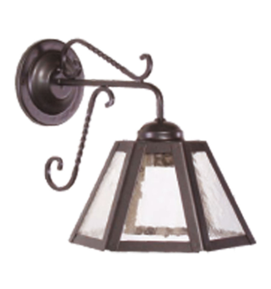 El modelo de aplique de forja rústico Toledo pertenece a nuestra selección de apliques de pared de forja de una luz. Esta pieza de iluminación destaca por su tulipa de cristal gótico montada sobre un casquillo para bombilla de E-27.