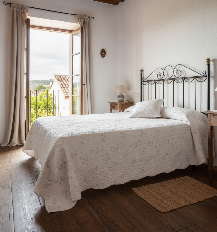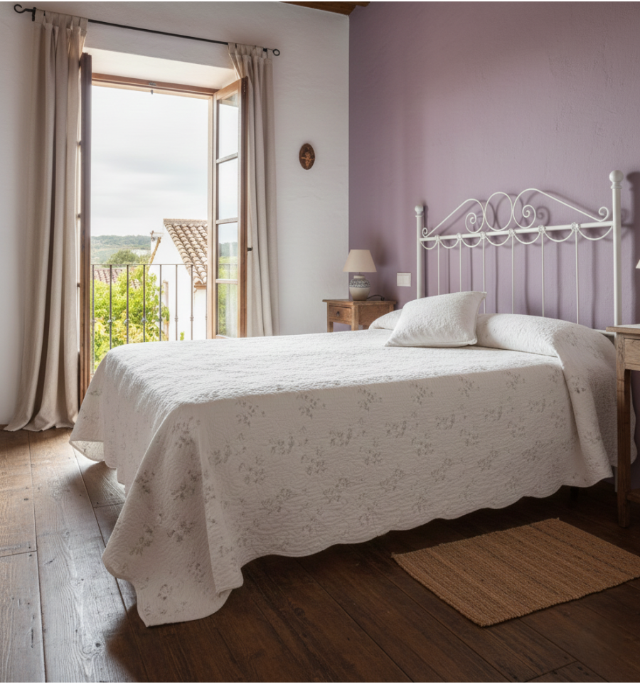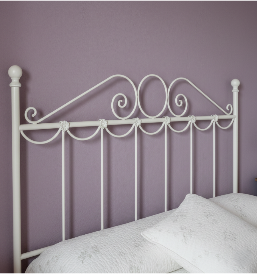 El modelo Guirnaldas es un cabecero de forja perfecto para los que quieren aportar una pincelada rural al dormitorio. Su diseño sencillo lo hacen encajar casi en cualquier tipo de decoración, tanto para camas infantiles como para camas de matrimonio.