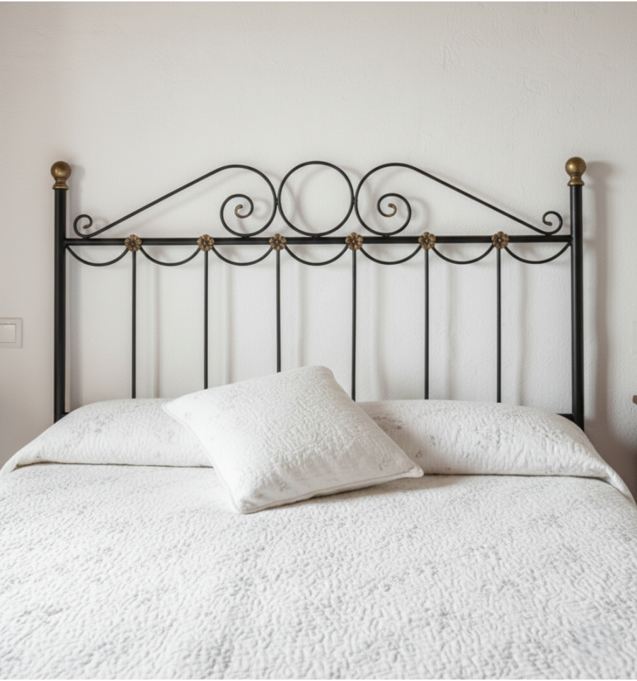 Cabecero de forja que tienes disponible para las siguientes medidas de colchón: 90-105-120-135-140-150 cm.