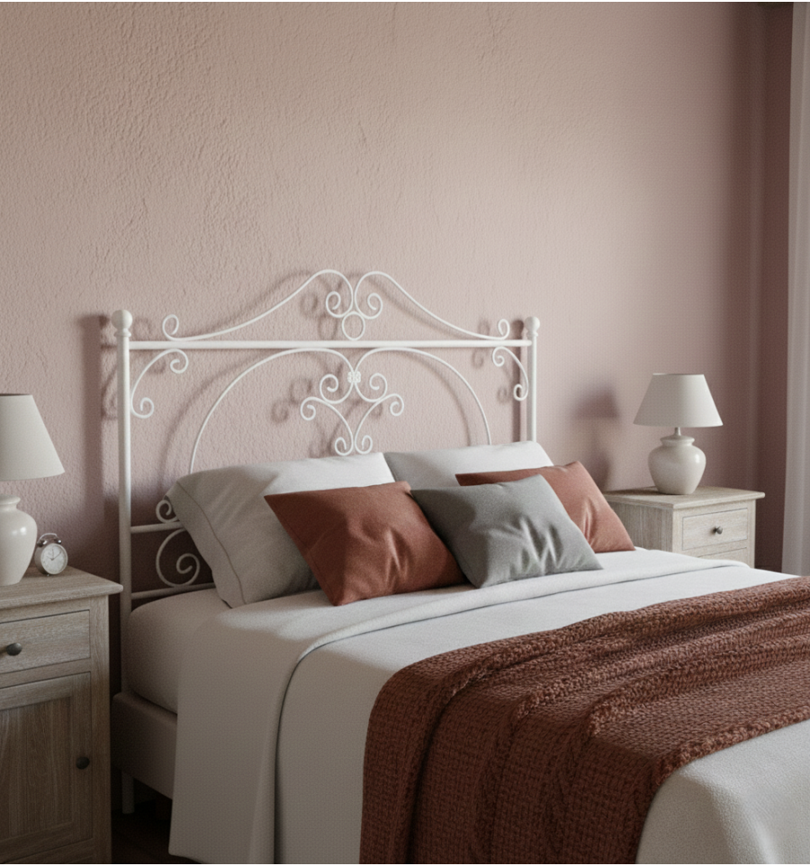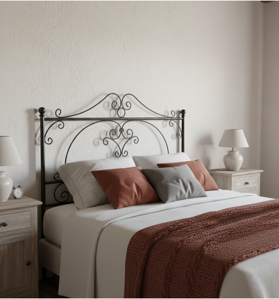 Dentro de nuestros cabeceros de forja baratos está el modelo Roleos. Un cabecero de cama que tienes disponible tanto para cama individual como para cama de matrimonio, ya que se fabrica para colchón de 90-105-120-135-140-150 cm.