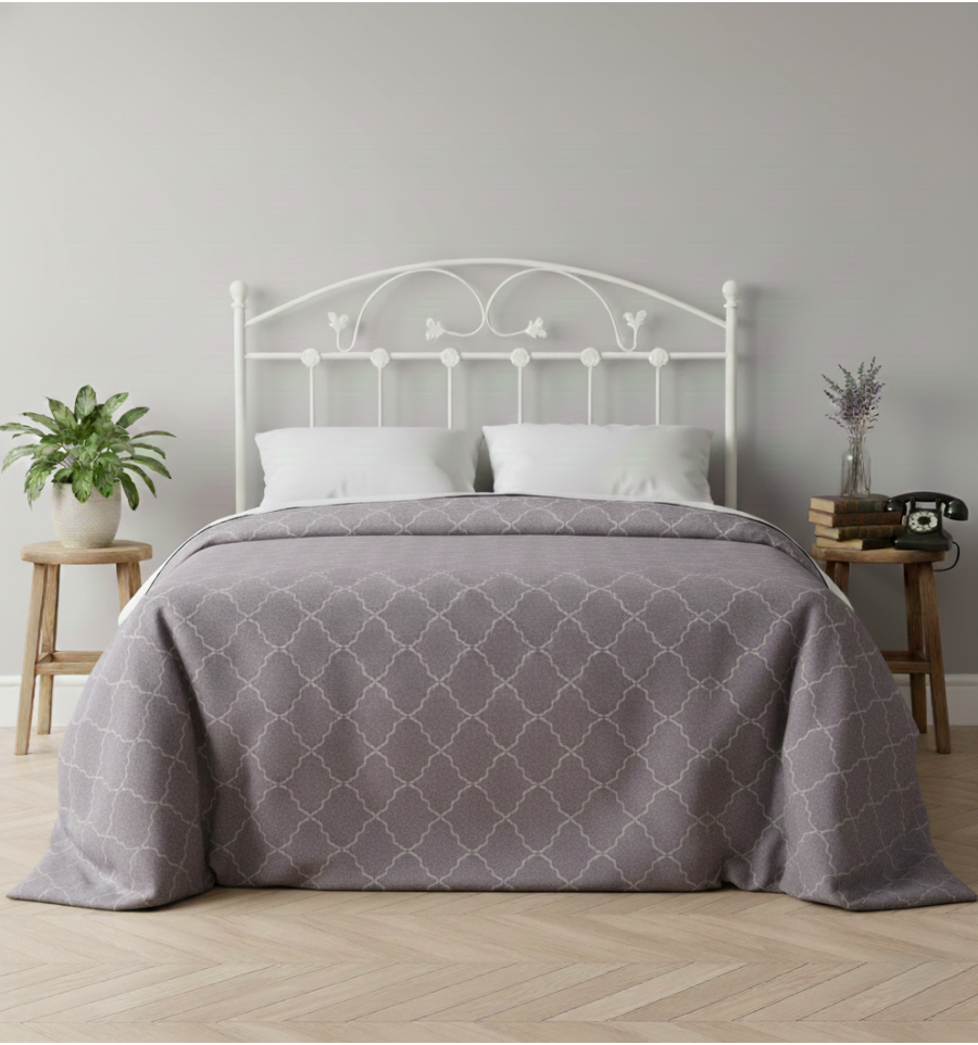 Un cabecero de forja blanco que puedes colocar en una pared de color, buscando los contrastes, o que puedes pedir en cualquiera de los acabados de la paleta de colores.