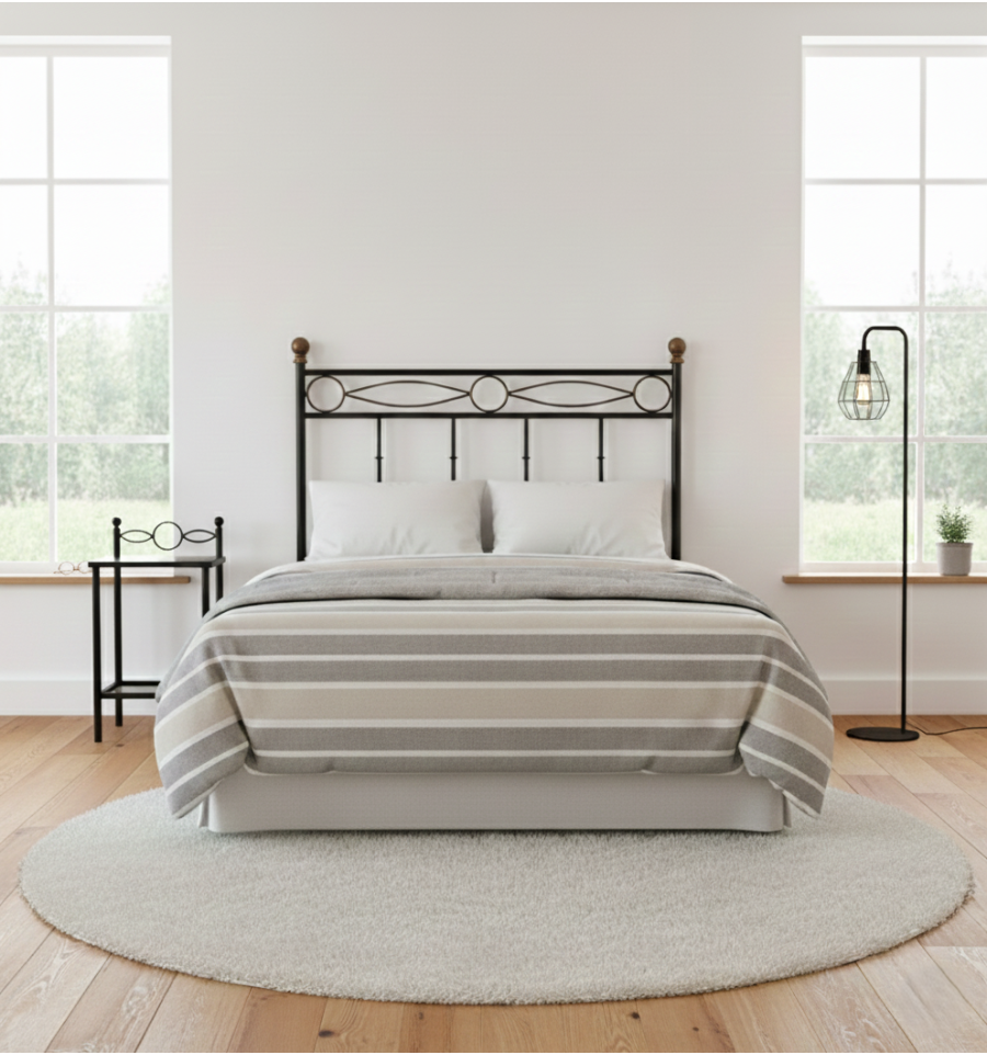 Dentro de nuestra categoría de cabeceros de forja baratos está el modelo Greca. Un original cabezal de cama con el que podrás decorar tu dormitorio, disfrutando de la mejor calidad a un precio muy económico.