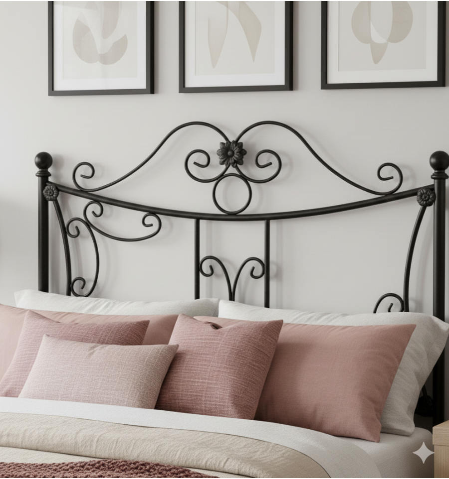 Este cabecero de forja barato también cuenta con una muesca en la parte trasera que te permitirá fijarlo a la pared mediante una alcayata. De esta manera, podrás asegurarte que se mantenga en su sitio y no se desplace.
