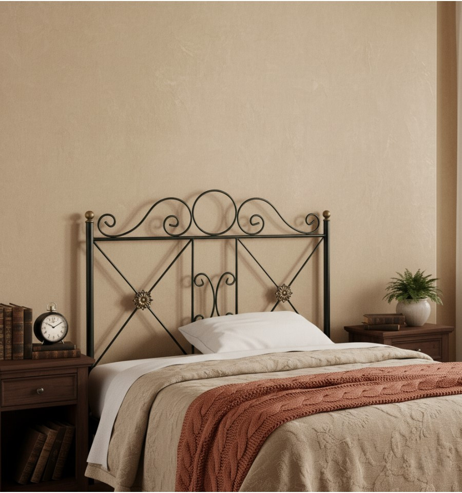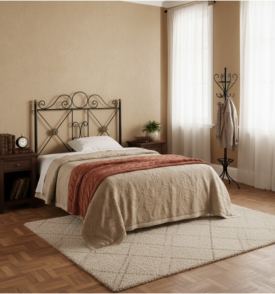 Cabecero de forja rústico modelo Castillo. Un diseño que tienes disponible para colchón de 90-105-120-135-140-150 cm. y varios colores y patinados.