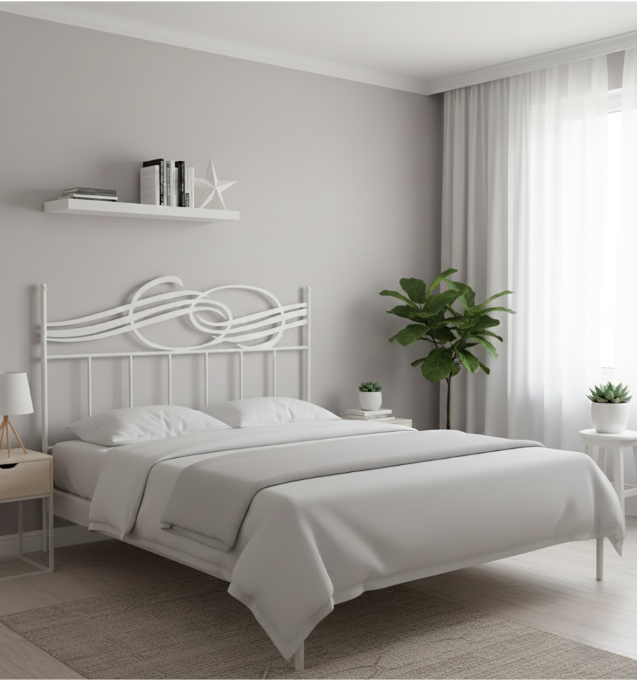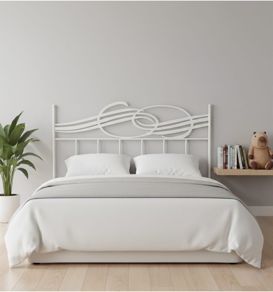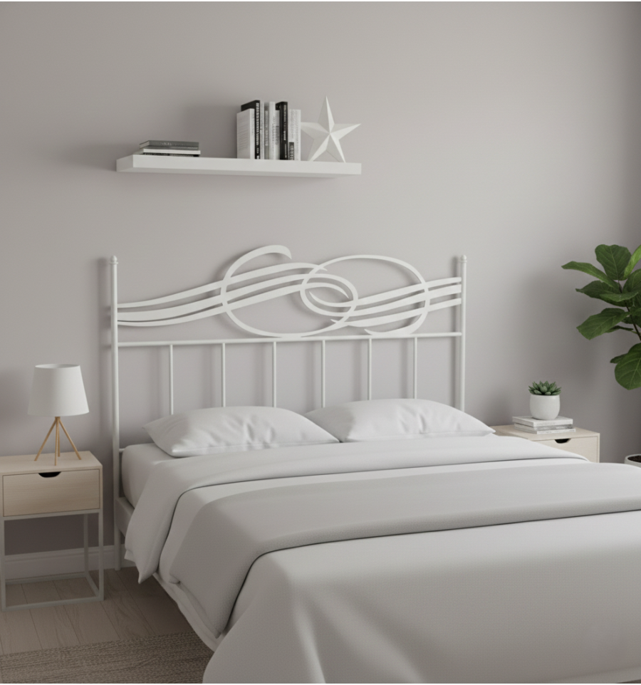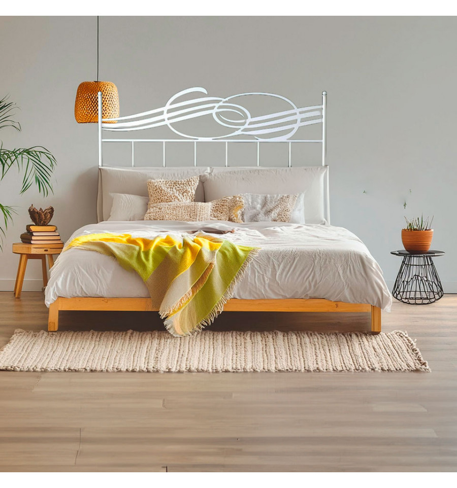 Su adorno central aporta un toque distintivo dentro de los cabeceros modernos de forja.