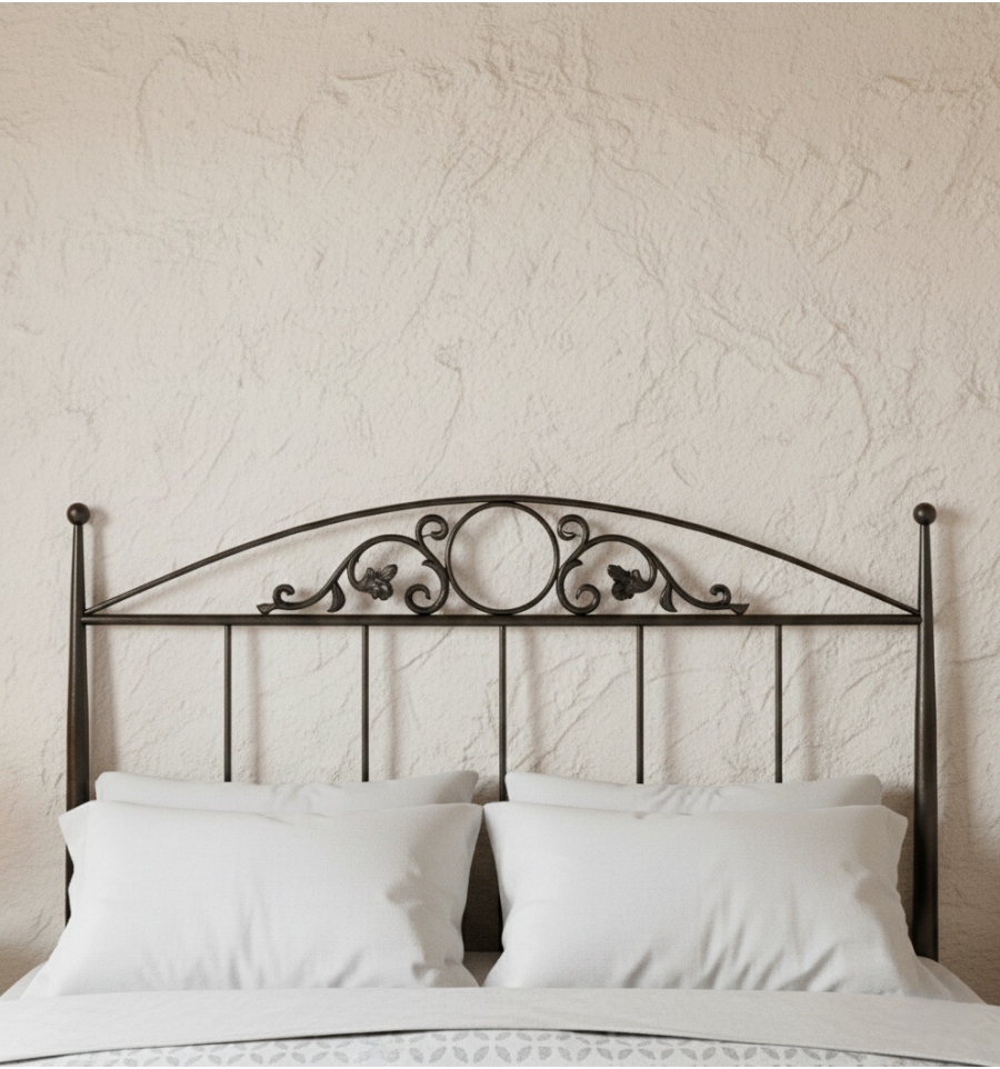 Dentro de nuestra colección de cabeceros de forja de estilo rústico, te presentamos el cabecero de forja Jaén. Se trata de una pieza de líneas muy clásicas. El cuerpo del cabezal está formado por unas barras de hierro que acaban rematadas con una bola decorativa. Lo que hace a este mueble de forja especial es el enramado que tiene en los laterales, imitando motivos florales. Os recordamos que el estilo rural intenta traer el campo a nuestras casas y una forma perfecta de hacerlo es a través de los cabeceros de forja.