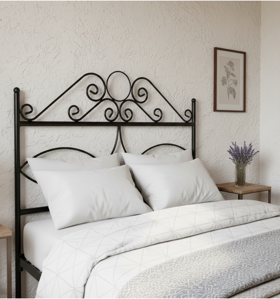 El cabecero de forja artesanal Álava combina la alta calidad de la forja con un precio accesible, para obtener una pieza duradera y resistente con un diseño versátil para poder combinarlo con muebles del mismo estilo u otro diferente.