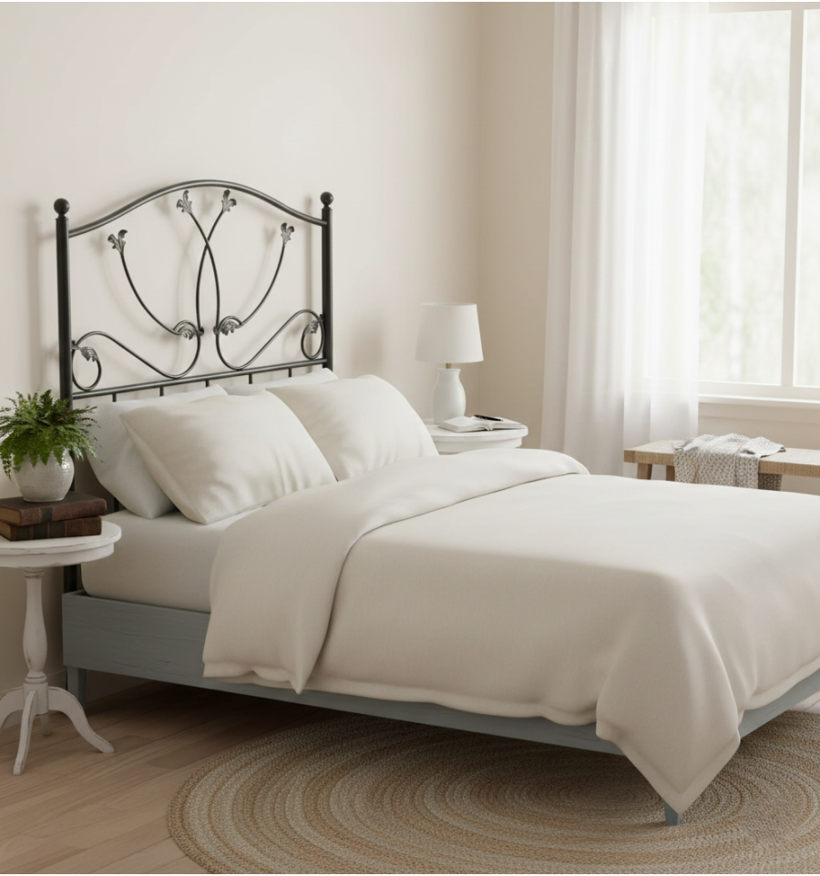 El cabecero de forja Beatriz es una pieza artesanal de calidad excepcional. Cada detalle ha sido cuidadosamente elaborado para garantizar su durabilidad y belleza. Las patas redondas lisas con terminales de bola aportan estabilidad y un toque de estilo adicional. Además, podrás elegir entre una amplia variedad de acabados de pintura de nuestra paleta de colores, lo que te permitirá personalizar el cabecero para que se adapte perfectamente a la decoración de tu dormitorio.