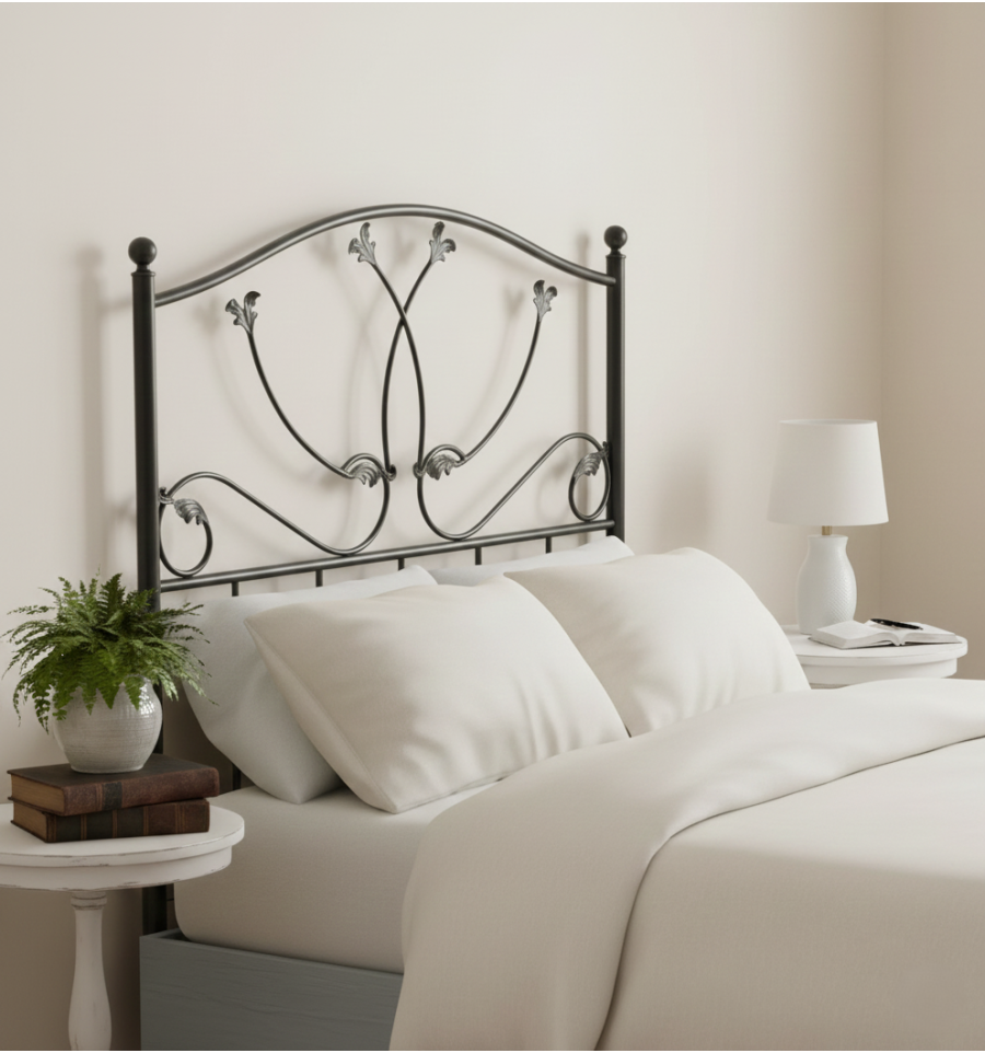¡Descubre la elegancia atemporal del cabecero de forja Beatriz! Con su diseño sencillo y encanto vintage, este cabecero de estilo clásico se convertirá en la joya de la corona de tu dormitorio de matrimonio. Fabricado en hierro con un delicado dibujo en la parte superior que culmina en hojas exquisitas, este cabecero combina a la perfección la sofisticación y la simplicidad.