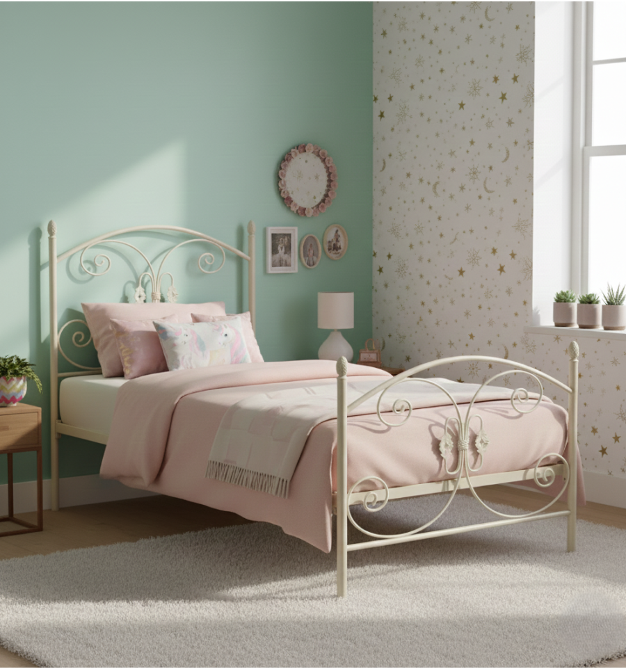 Esta no es una de esas camas de forja convencionales. Cada pieza pasa por un riguroso proceso de acabado donde la pintura se fija mediante secado al horno. ¿Qué significa esto para ti? Que el color no se salta con los roces, se mantiene impecable frente a la humedad y es increíblemente fácil de limpiar. Es un mueble diseñado para resistir la energía de los niños y adolescentes, manteniendo siempre su elegancia intacta.
