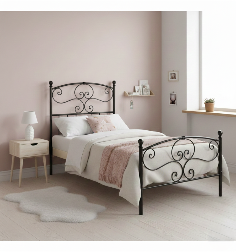 La cama completa de forja Granada es la combinación perfecta de romanticismo y resistencia para el dormitorio de los más jóvenes. Con un diseño de volutas simétricas que evocan la elegancia clásica, esta pieza se adapta maravillosamente a ambientes que buscan luminosidad y un toque distinguido.