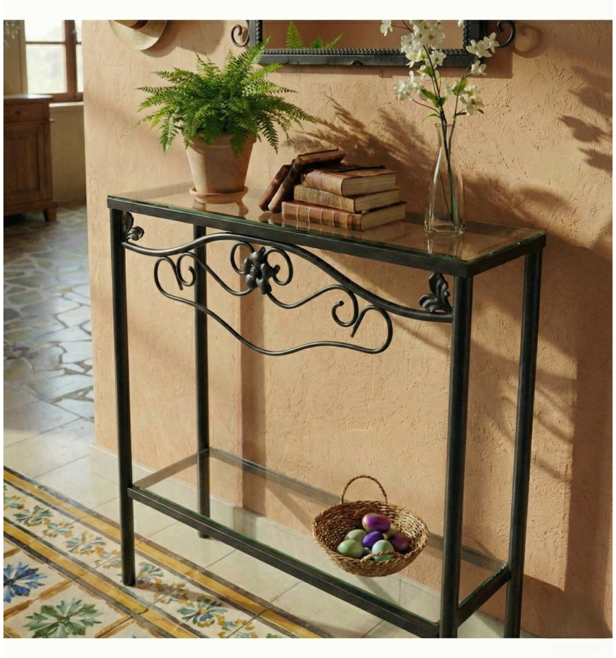 Transforma tu recibidor en un espacio cálido y acogedor con la consola de forja para recibidor Ainhoa. Entra en nuestra tienda online y descubre la magia de la forja española con la colección Ainhoa.
