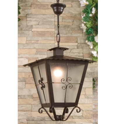 El farol de techo para exterior modelo Lara es una pieza única que combina diseño artesanal, calidad y funcionalidad, perfecta para añadir un toque rústico y acogedor a porches, terrazas o entradas de casas rurales. Fabricado en hierro forjado y con cristales mate, este farol crea una iluminación suave que transforma cualquier espacio en un lugar cálido y encantador.