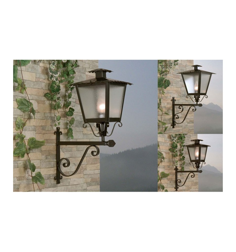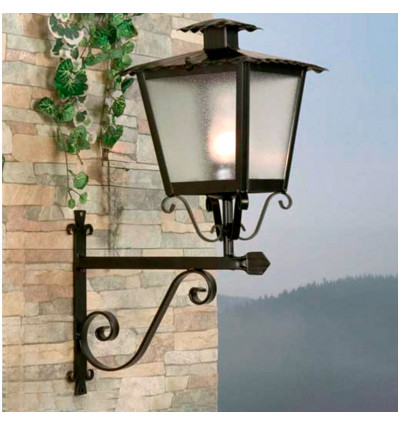 El farol exterior de pared con soporte de la colección Lara es perfecto para quienes buscan una iluminación funcional con un diseño rústico distintivo.