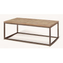 Mesa de centro rústica de madera con una sólida y sencilla estructura de hierro rectangular y una tapa de madera que podrás personalizar al gusto.