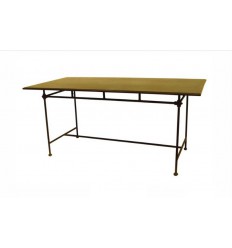 Mesa velador en forja de estilo rústico con 3 patas, tapa de chapa con diámetro de 80 cm. y una altura de 73 cm.
