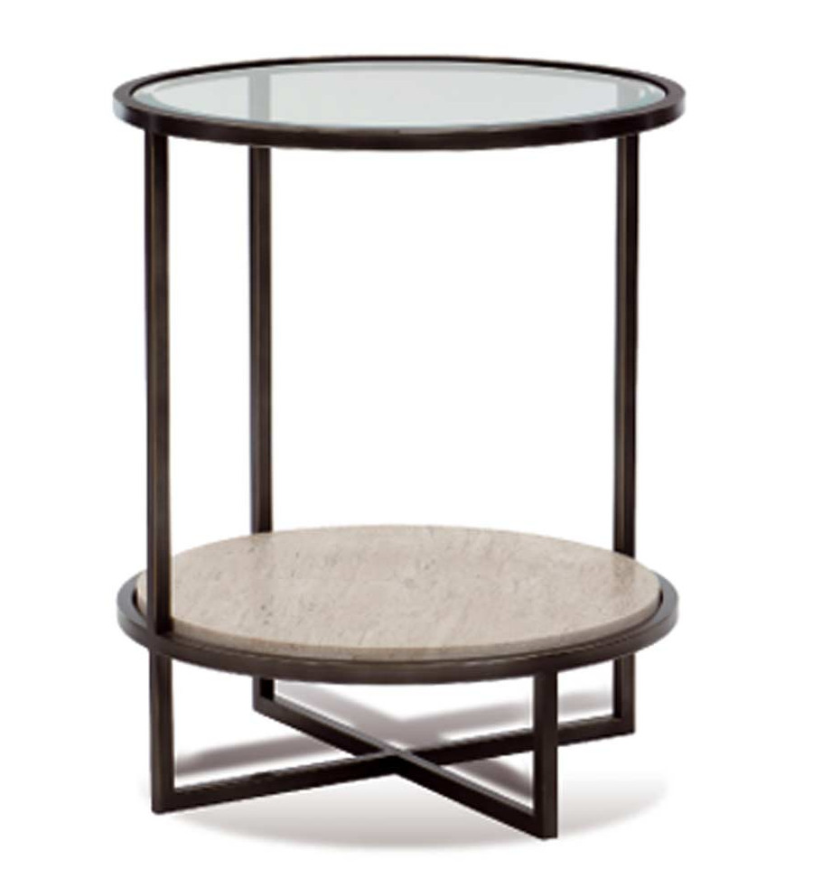 Nuestra mesa auxiliar redonda cristal madera tiene una estructura metálica y dos tapas, una de madera y otra de cristal.