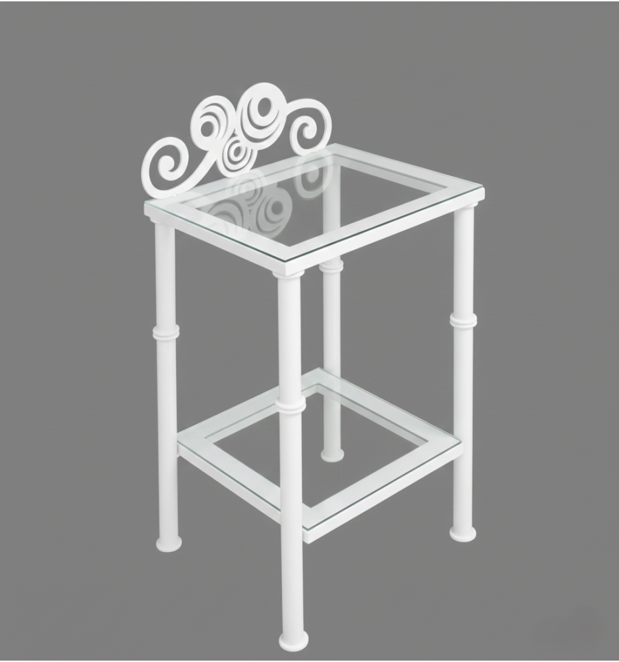 Desde Forja Hispalense recomendamos esta mesa de noche con cristal para dormitorios que necesitan una solución decorativa sin sobrecargar el ambiente.