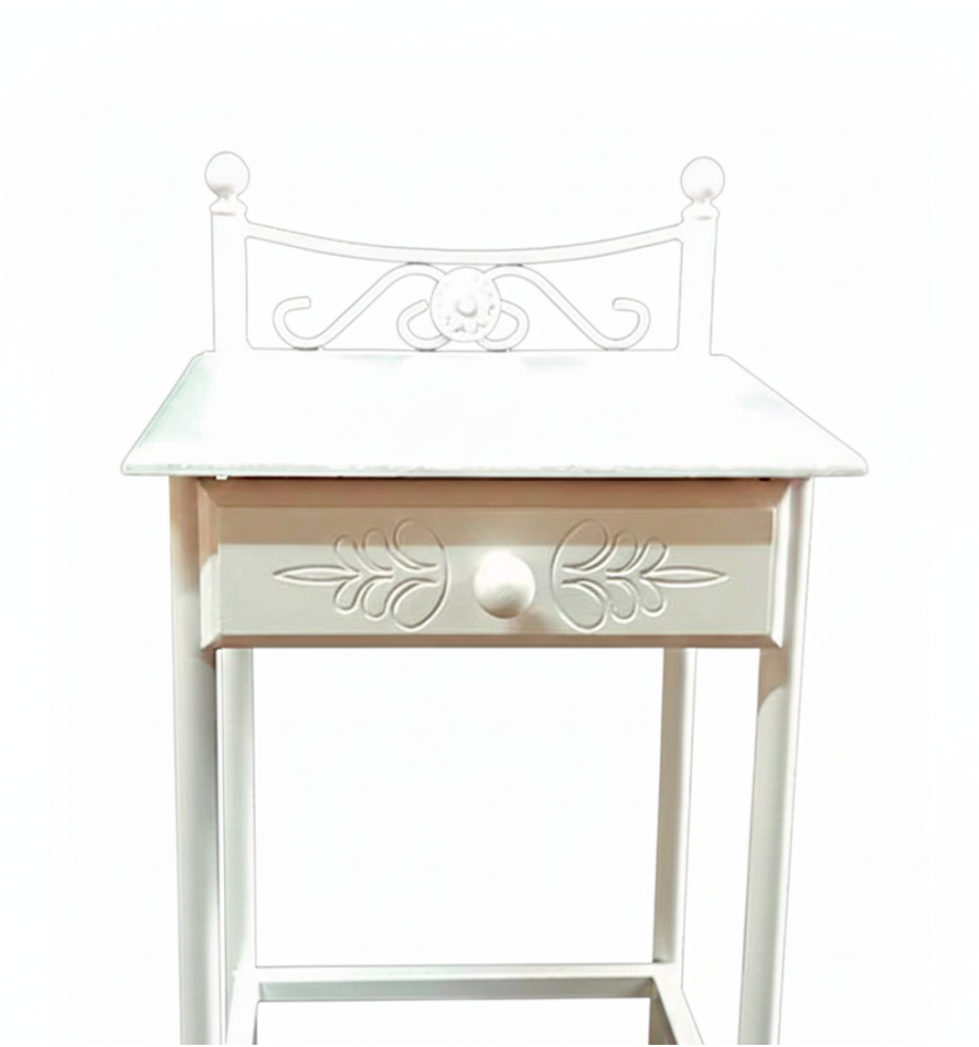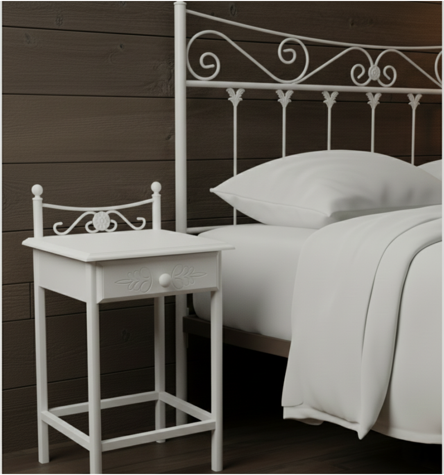 La mesita blanca de noche modelo Coín es un mueble auxiliar fabricado en forja que está disponible en tres modelos diferentes.
