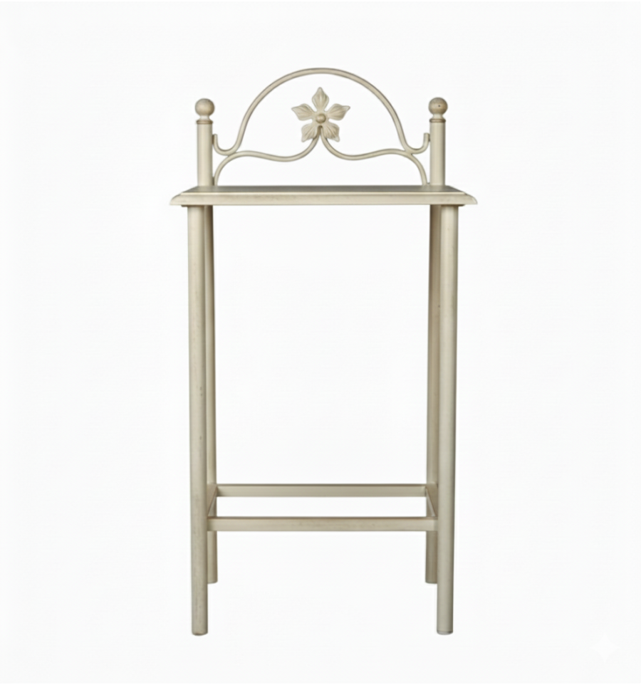 Mesita rústica Penacho terminada en hierro y con un detalle con forma de roseta en la parte de arriba.