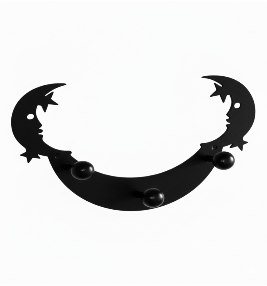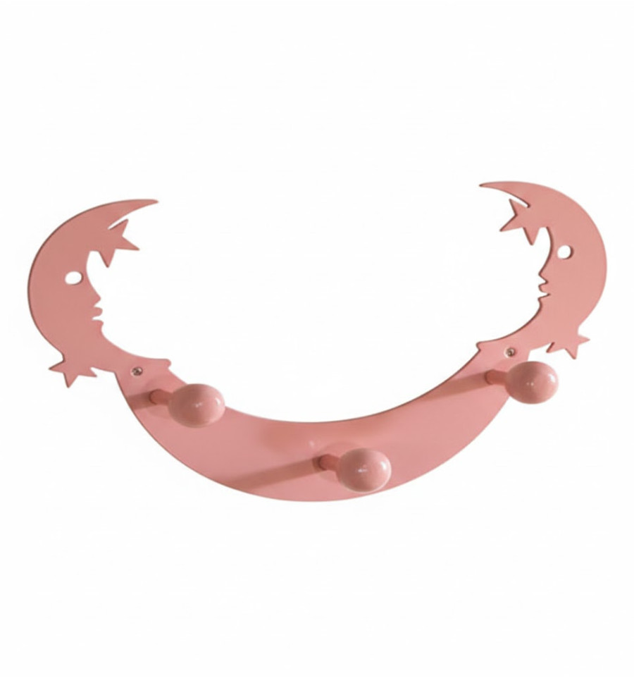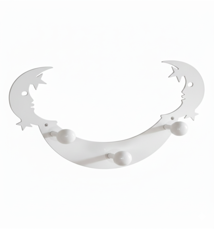 Percha de hierro de 3 ganchos con un detalle decorativo de lunas y estrellas. ideal para dormitorios infantiles.