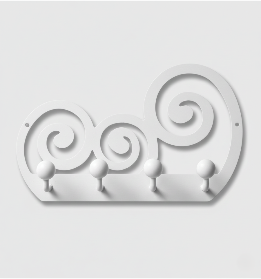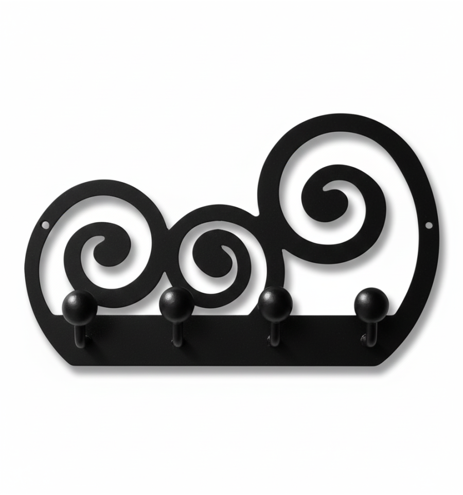 Cabide de parede de ferro com 4 ganchos e um desenho original de espirais.