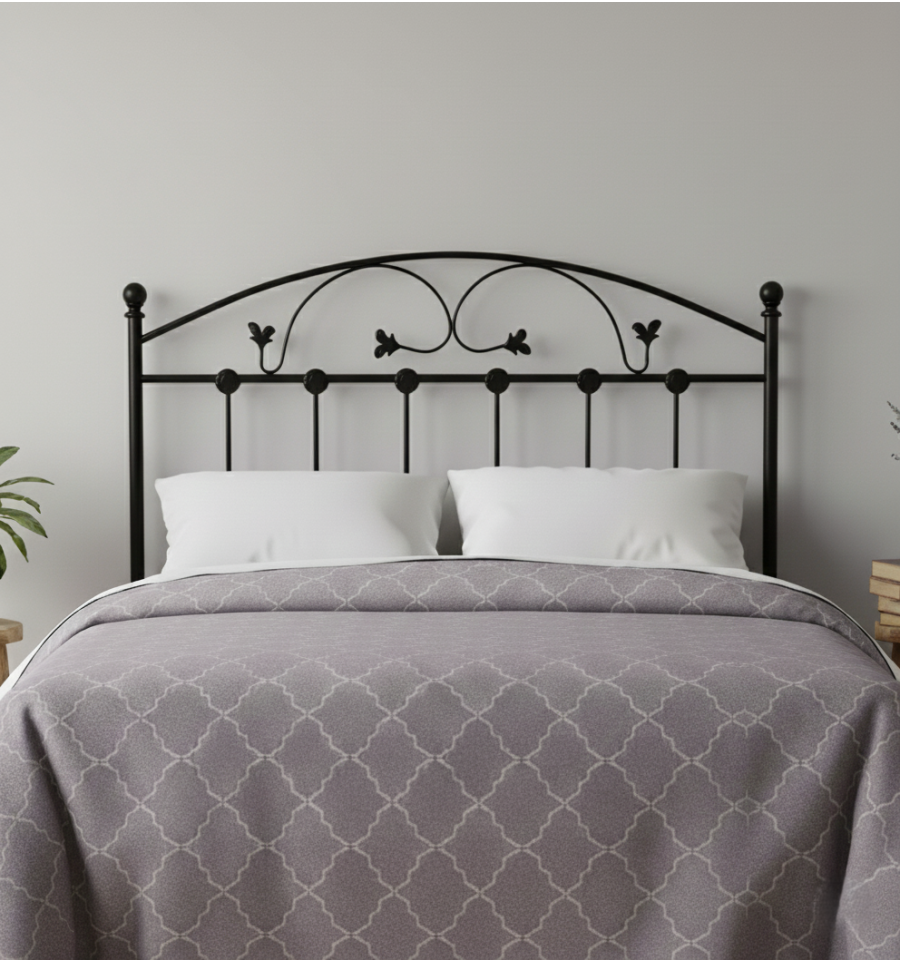 Cabeceira de forjamento barata com um design rústico ideal para dar ao quarto um toque rural.