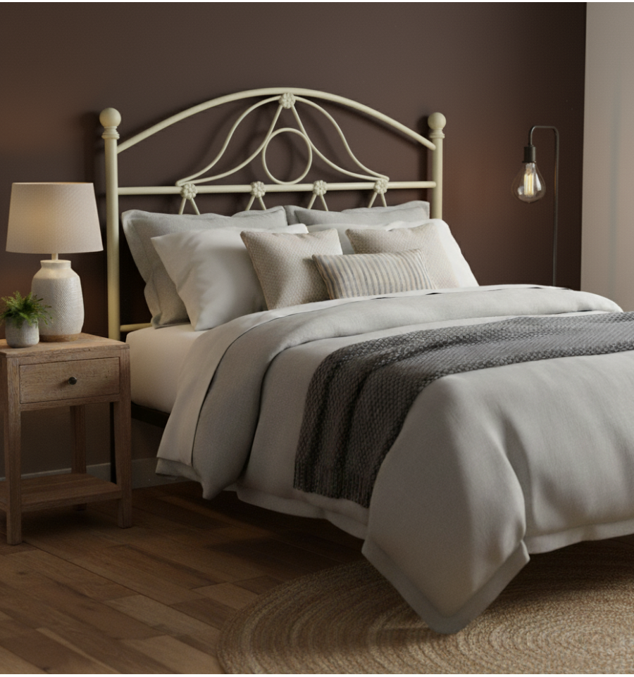 Cabeceira de ferro forjado rústica disponível em várias cores e para os seguintes tamanhos de colchão: 90-105-120-135-140-150 cm.