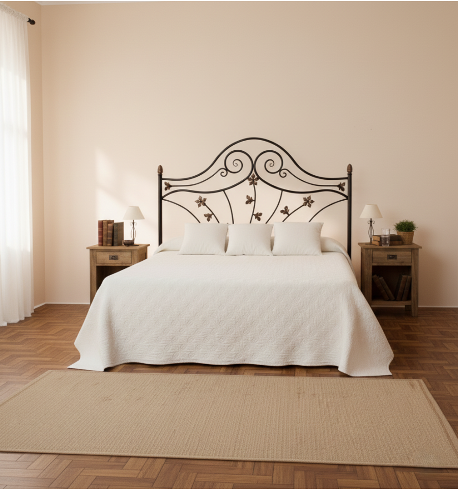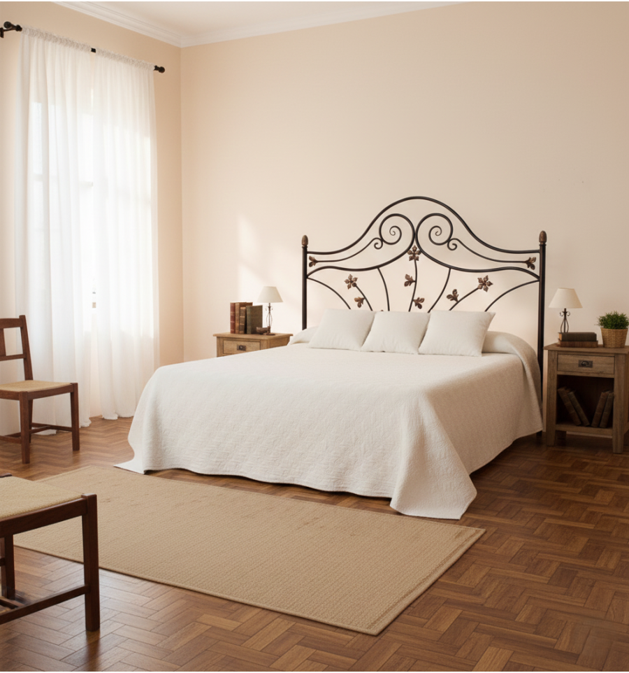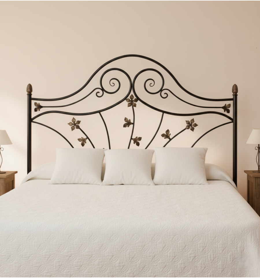 Cabeceira de forjamento barato com detalhes decorativos que você pode comprar para as seguintes medidas de colchão: 90-105-120-135-140-150 cm.