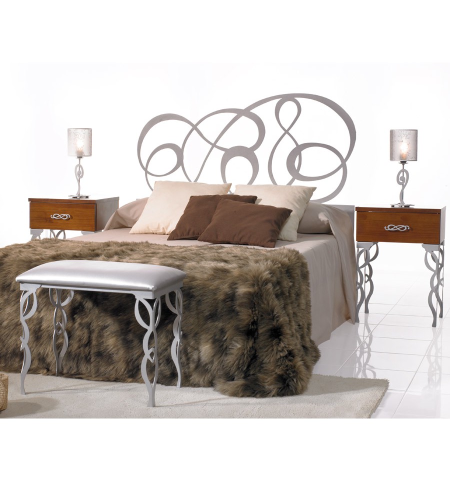 O modelo María é uma cabeceira mural de ferro forjado com design moderno, produzida em chapa metálica recortada a laser, com um desenho assimétrico de linhas curvas. Está disponível para colchões de 90, 105, 120, 135, 140, 150, 160, 180 e 200 cm, e numa ampla gama de acabamentos.