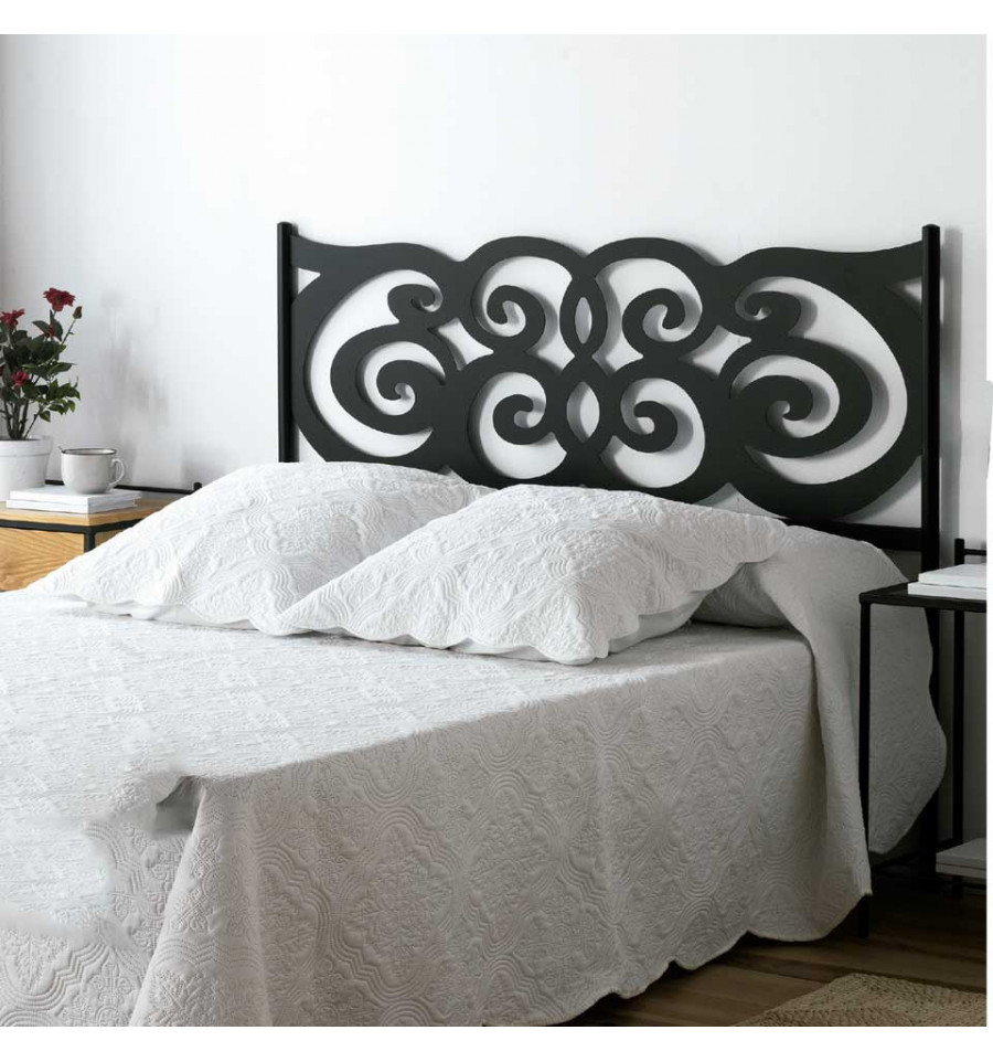 A Cabeceira de forja Asturias é produzida em chapa metálica cortada a laser e está disponível para colchões de 90, 105, 120, 135, 140, 150, 160, 180 e 200 cm.
