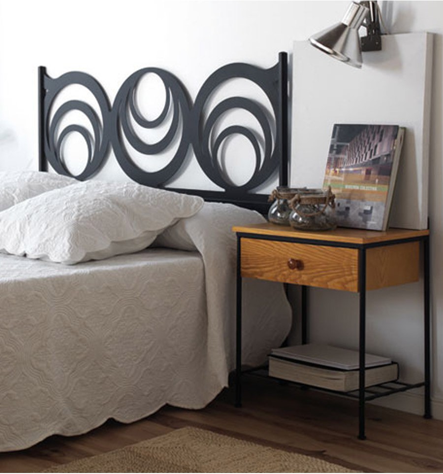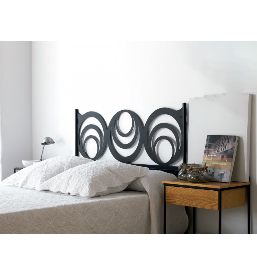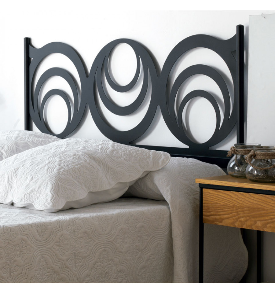 A Cabeceira de forja moderna Getafe é fabricada em chapa metálica cortada a laser e está disponível para colchões de 90, 105, 120, 135, 140, 150, 160, 180 e 200 cm. Pode ser escolhida em vários acabamentos de pintura.