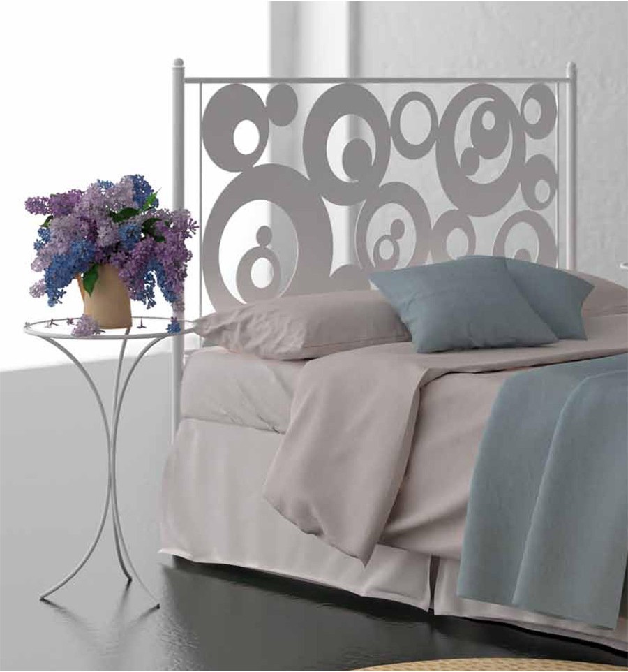 O modelo Tudela é um cabeceiro Tudela de ferro forjado com design moderno, caracterizado por aros assimétricos. Está disponível para colchões de 90, 105, 135 e 150 cm, com várias opções de acabamento.