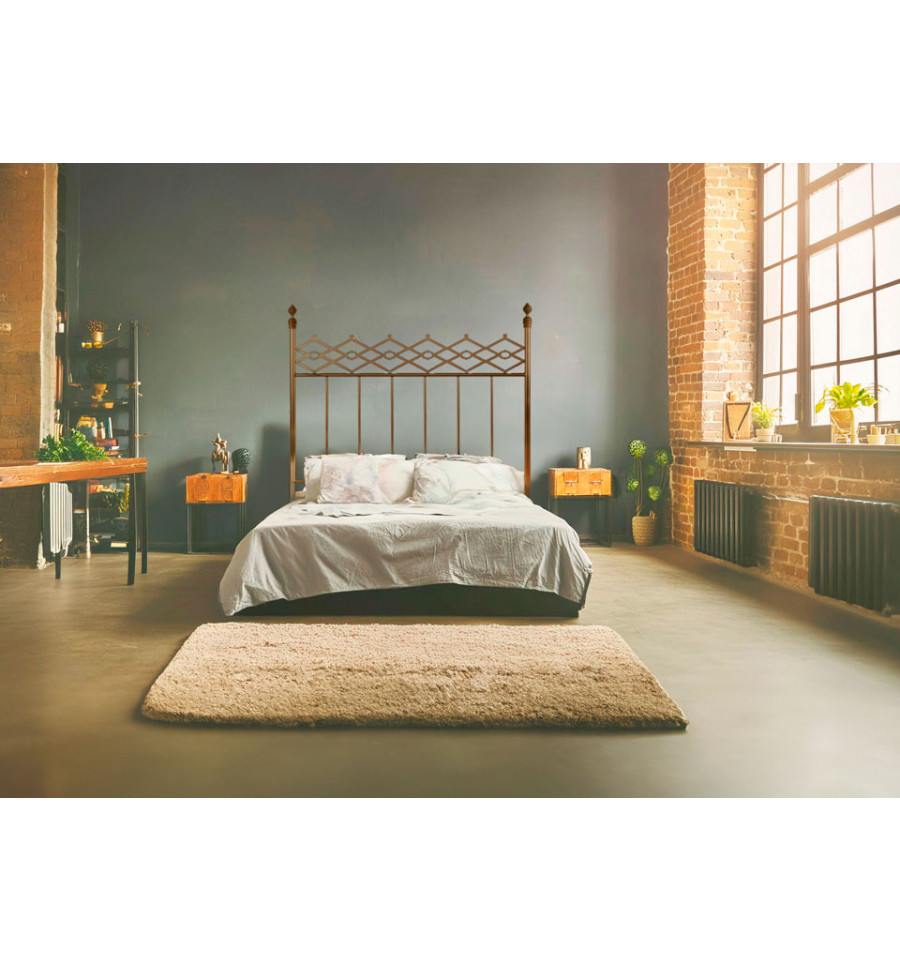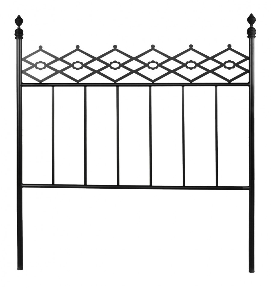 A cabeceira de forja moderna Toledo em cabeceira moderna é fabricada em ferro e decorada com figuras geométricas em chapa metálica cortada a laser. Está disponível em várias medidas e acabamentos de pintura, permitindo ajustá-la à largura do colchão conforme as necessidades de cada quarto.
