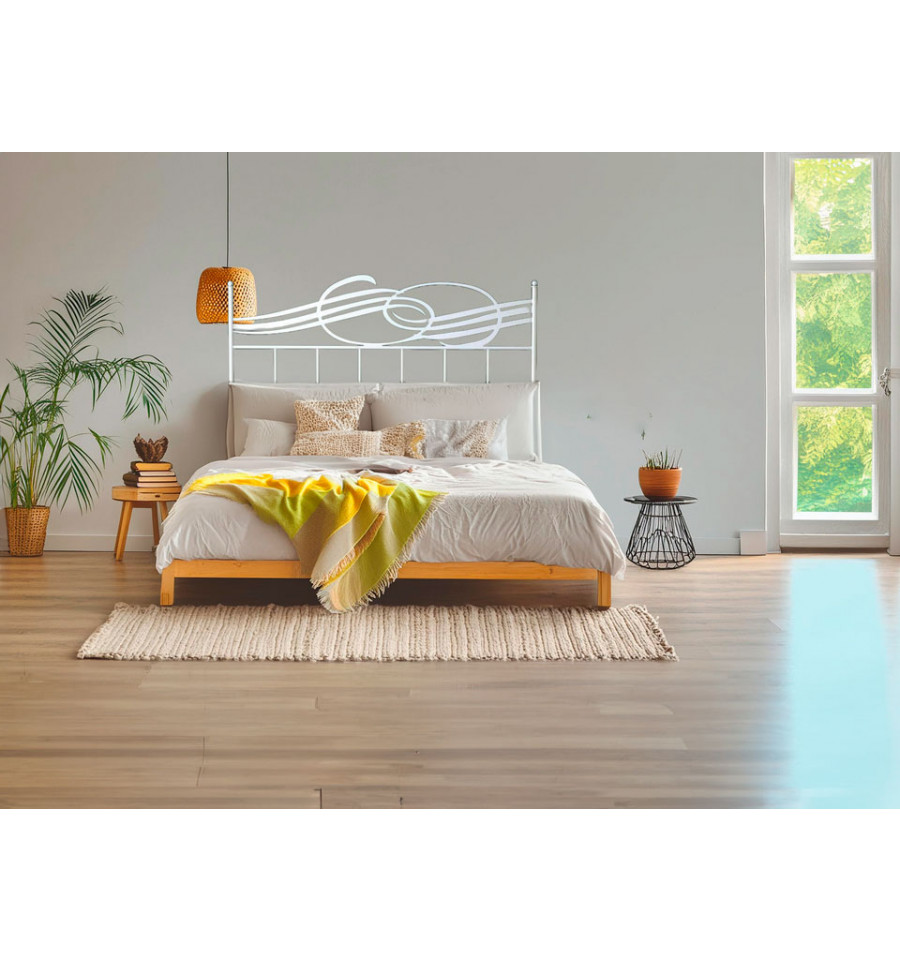 A cabeceira moderna Anaís é fabricada em ferro e combina uma estrutura de forja tradicional com um desenho contemporâneo em chapa metálica cortada a laser.