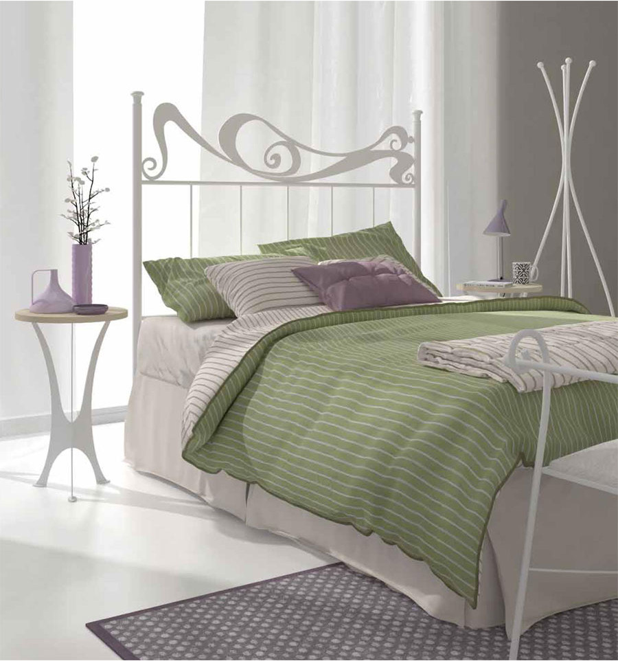 A Cabeceira de forja moderna Monza é fabricada em ferro com painel superior em chapa metálica cortada a laser. Está disponível para colchões de 90, 105, 135 e 150 cm, com vários acabamentos de pintura.