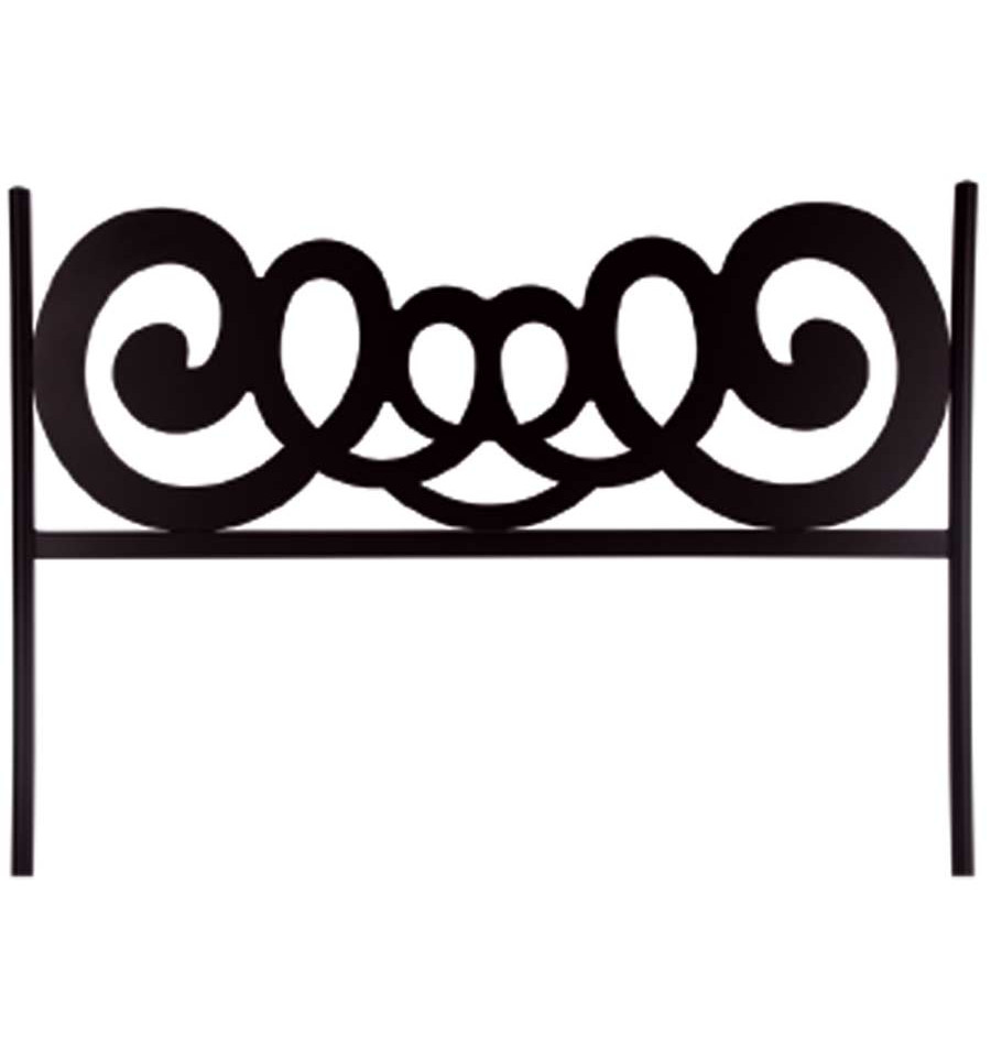 O modelo com desenho abstrato é um cabeceiro metálico com estrutura em ferro, decorado com um desenho abstrato em chapa metálica recortada a laser e com pernas redondas.