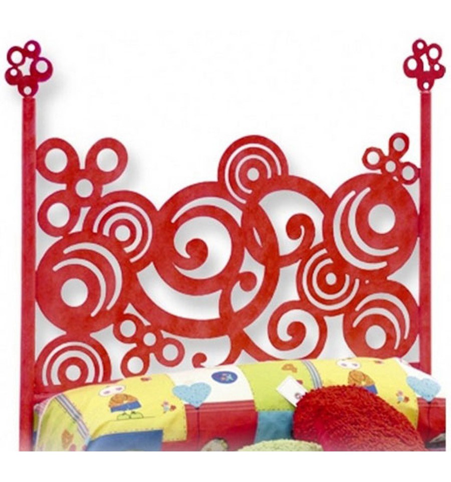A cabeceira moderna é fabricada em chapa metálica cortada a laser e está disponível para colchões de 90, 105, 120, 135, 140 e 150 cm. O seu desenho original adapta-se tanto a quartos juvenis como a quartos de casal.