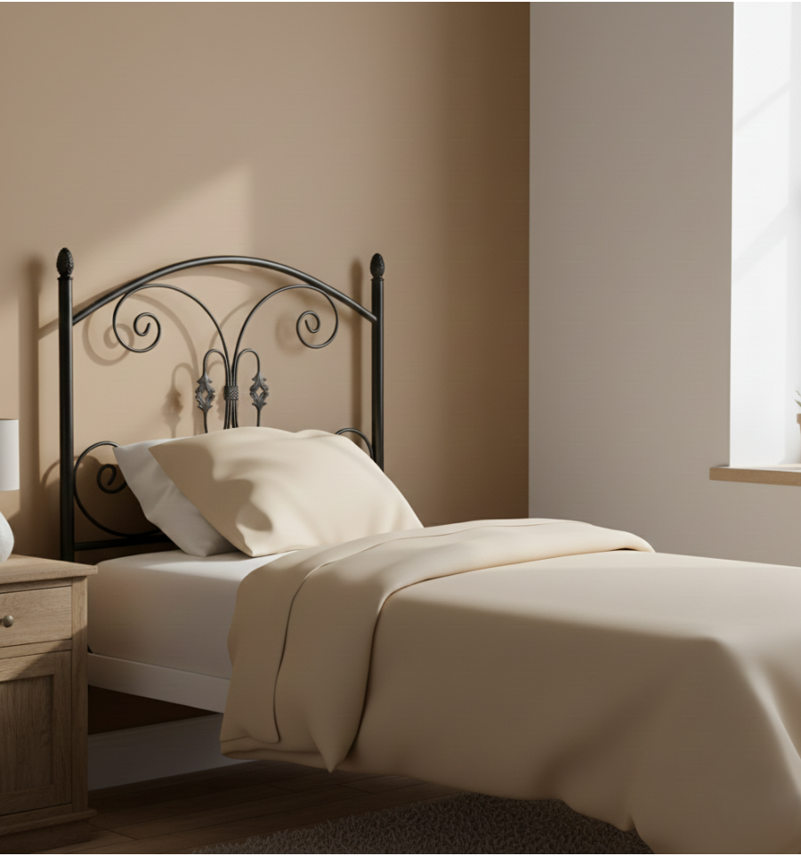 Cabeceira de ferro forjado rústica que você tem disponível para um colchão de 90-105-135-150 cm.