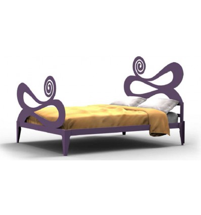 Cama forjada em estilo moderno, que é feita de folha de metal cortada com laser e disponível para diferentes tamanhos de colchão: 90-105-135-150-160-180-200 cm.