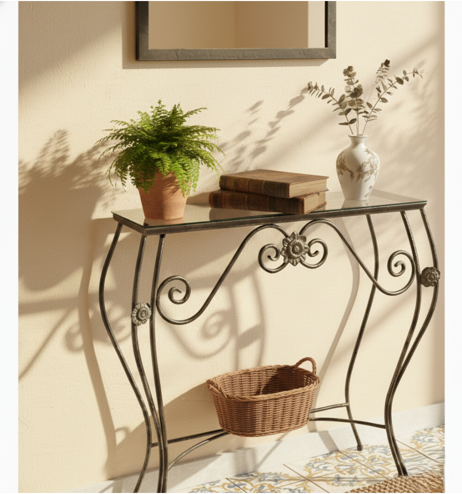 A entrada da nossa casa diz muito sobre nós, pois é o primeiro espaço que mostramos. É por isso que devemos escolher a mobília com muita calma. Se o seu estilo é rústico, o console de forja Cleópatra é perfeito para você.