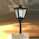Fabricado em ferro forjado com uma base resistente, o seu design rústico alia funcionalidade e estética, oferecendo uma solução elegante para a iluminação exterior.