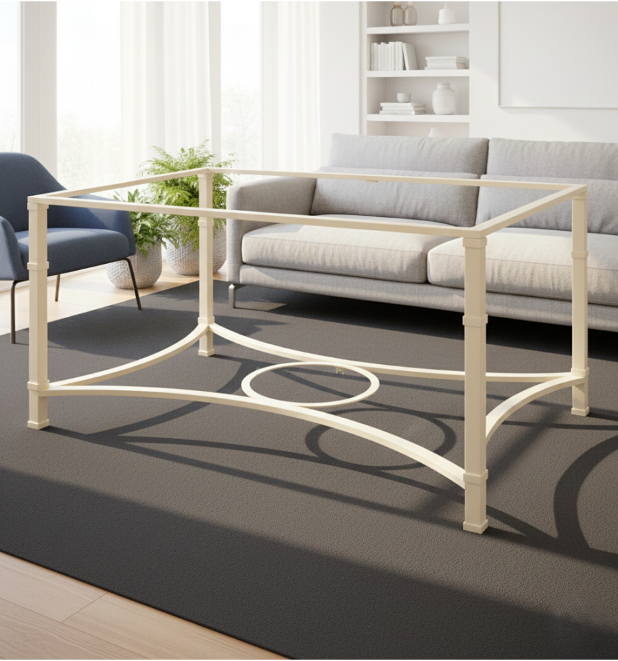 Patas quadradas e rectas ligadas por largueros curvos na base para máxima estabilidade.